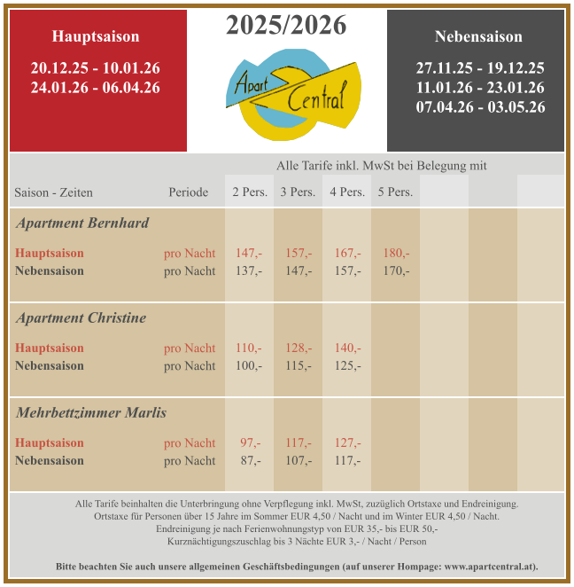 Winter - Tarife